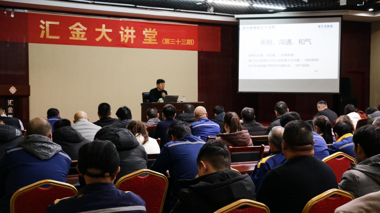 2024年1月5日,第三十三期“匯金大講堂”在匯金集團武陟生產中心成功舉行,匯金集團董事長郭榮勛先生現場為大家帶來主題為《解讀〈謀事之工具〉暨匯金集團銷售文化》的精彩分享。集團部分中高管及員工參加了此次課堂活動.