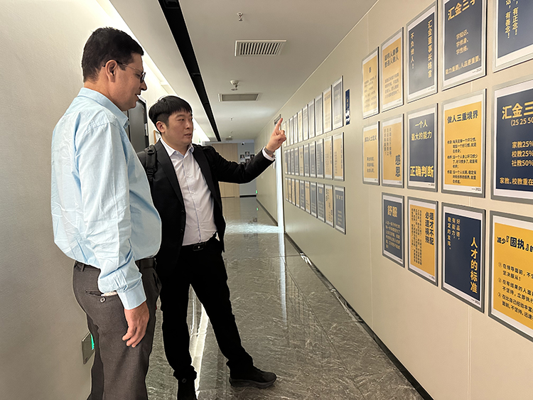 隨后,印度客戶又前往河南匯金集團鄭州總部進行了參觀。在總部,劉總監為客戶詳細講解了公司發展歷程以及集團企業文化。劉總表示:匯金集團成立于1992年,至今已有32年發展歷程,隨著公司的快速發展以及產品研發能力的提升,公司在做好國內市場的同時也在不斷擴大著國際市場,而印度始終是公司對外貿易的重要市場之一,也感謝多年來國內外客戶的大力支持。參觀結束后,客戶結合市場方向和現階段需要我們解決的問題與我司技術人員展開了深入交流。我司工作人員專業的知識講解和熱情的工作態度,給客戶留下了深刻印象。