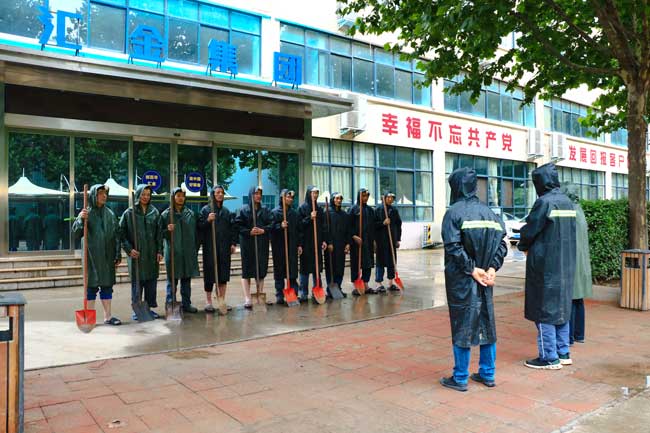 2021年7月20日,河南遭受千年一遇的極端特大暴雨襲擊,面對這一破壞性自然災害,匯金集團董事長郭榮勛先生、CEO兼總裁孔攀紅女士果敢決策,工廠領導冒雨堅守、指揮得當,工廠同事大義為先、沖鋒一線,匯金集團上下一心、攻堅克難,創下了工廠零損失、人員零傷亡的抗洪救災戰績……